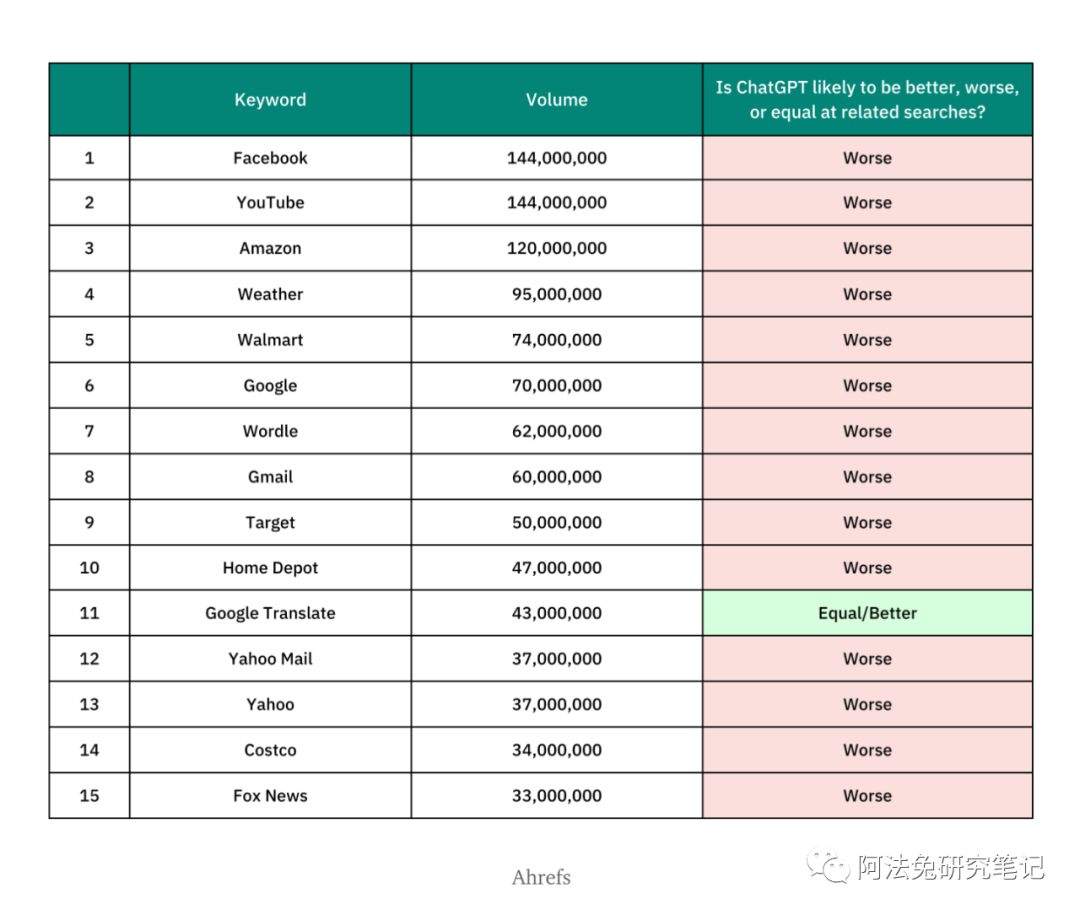 从谷歌的角度来看:ChatGPT是否会作为一个搜索引擎这一点,是非常重要的。因为如果是这也,ChatGPT就会建立自己的产品,从而服务于这个用例,并和谷歌进行正面竞争。