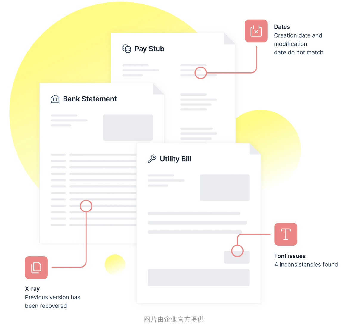 「Inscribe」对金融文件进行解析、分类和数据匹配,利用人工智能驱动的欺诈检测系统,显示所检测文件和其他资料之间的任何差异。该系统将姓名、地址和银行交易账单等文件细节整理成数据点,生成账单流水、交易快照等客户风险档案。