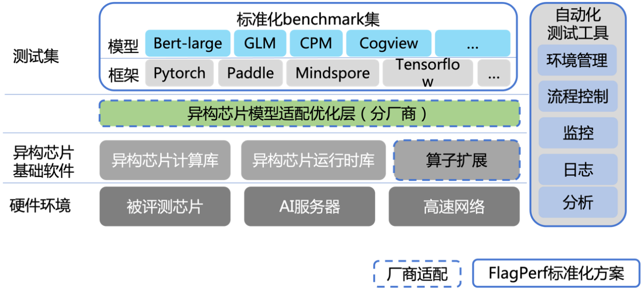 左侧上面的蓝色框内是标准化的benchmark测试集。包括标准化的模型训练benchmark case实现,和多个框架的支持。这里也涉及到AI框架的添加,主要在通用的benchmark driver中实现AI框架的driver支持。同样的,训练中打印日志、注册和处理Event等已有通用的模块处理。完全不需要你来操心。如果你觉得哪里能做得更完善,也可以一并修改了提PR哦。