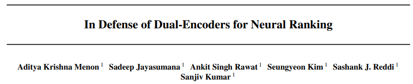 同时还研究了从交叉编码器(dual-encoder, 例如 BERT)到因子双编码器(dual-encoder)的新方法,这也是对(query, document)对的相关性进行评分的重要设置。
