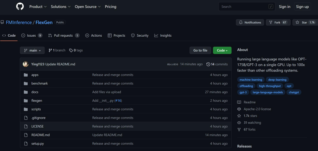 目前,该技术已经放出代码,获得了几千 Star 量:https://github.com/FMInference/FlexGen