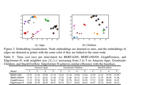 - 根据经验,在来自不同领域的五个公共数据集上进行了实验,并证明了Edgeformer优于各种基线,包括以节点为中心的GNN、边缘感知GNN和PLM-GNN级联架构。