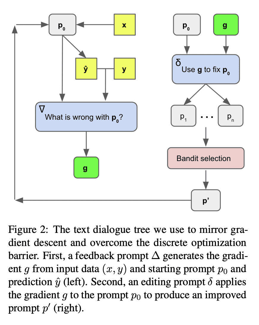 手写提示需要费时费力,APO提供了一种自动化的解决方案。 方法:利用数值梯度下降自动优化提示,同时结合beam search和bandit selection procedure提高算法效率。 优势:无需调整超参数或模型训练,APO可以显著提高提示的性能,并具有可解释性。