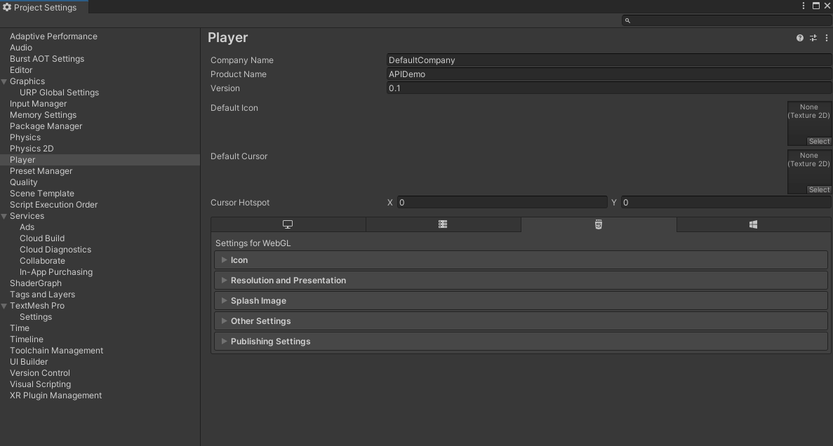 第 5 步: 打开 Player Settings 面板