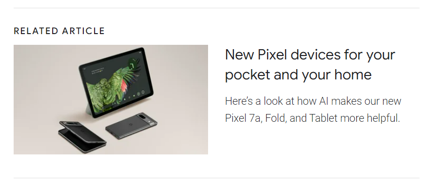 今天,我们还将推出 Pixel 7a、Pixel Fold 和 Pixel Tablet,打造了 Google 完整的 AI 设备生态系统。Pixel 7a 从今天起开始发售,Pixel Fold 和 Pixel Tablet 的预售也已开放。