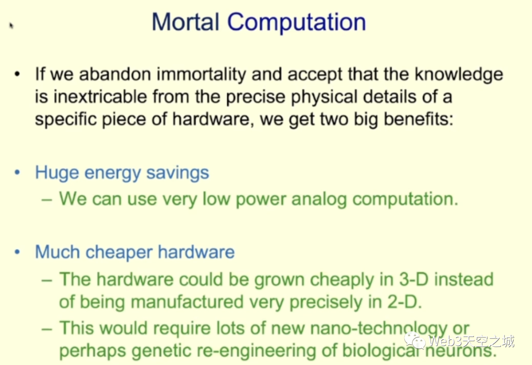 全新的计算模式之所以被Hinton称为 Mortal computation,寓意是深刻的: