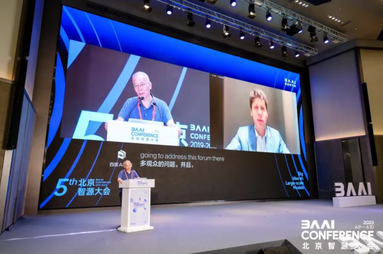 Sam Altman显然是最受热捧的明星,他发表主旨演讲和随后与智源研究院理事长张宏江的一对一对话吸引了无数目光,他本人随后也在Twitter表达了对智源大会邀请的感谢。