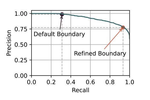 基于这个发现,论文通过留一法交叉验证(Leave-One-Out Cross Validation)的方法重新选定了决策阈值,成功地平均召回率提升到 81.78%。