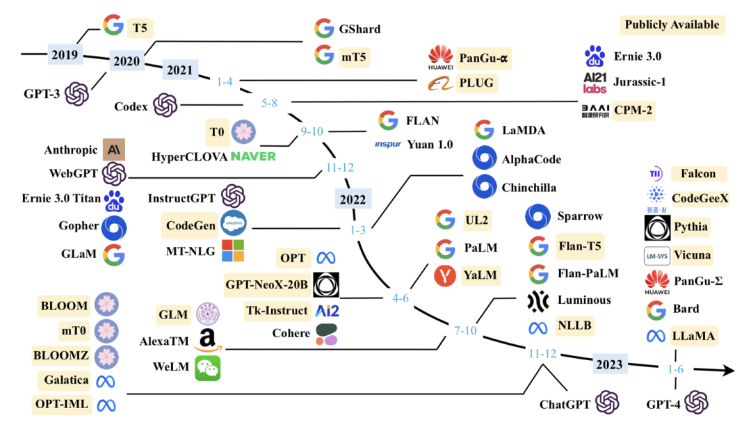 我们对于最新符合条件的模型进行了补充,持续更新了现有的10B+的模型图: