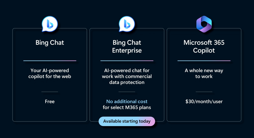 Bing Chat Enterprise 已经开始向获得 Microsoft 365 E5、E3、Business Premium 和 Business Standard 许可的企业免费推出预览版。