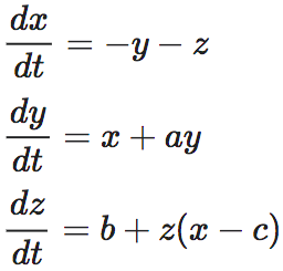 上述的三个例子都是针对离散的状态系统的因果涌现衡量,Varley尝试将连续系统转换成离散的状态转移图进行比较[21]。作者使用OPN(有序划分网络)方法来离散化Rossler吸引子来创建有限数量的状态以及定义一个状态到另一个状态的转移概率。Rossler吸引子的动力学如下所示: