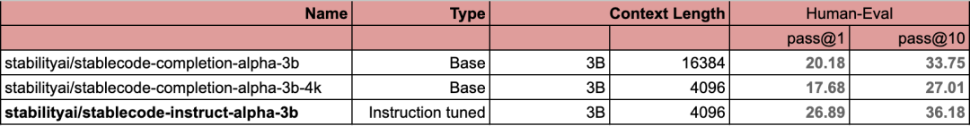 下表为 StableCode 三个版本模型的基准分数。