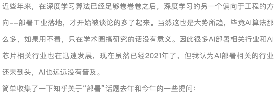 AI部署这个词儿大家肯定不陌生,可能有些小伙伴还不是很清楚这个是干嘛的,但总归是耳熟能详了。