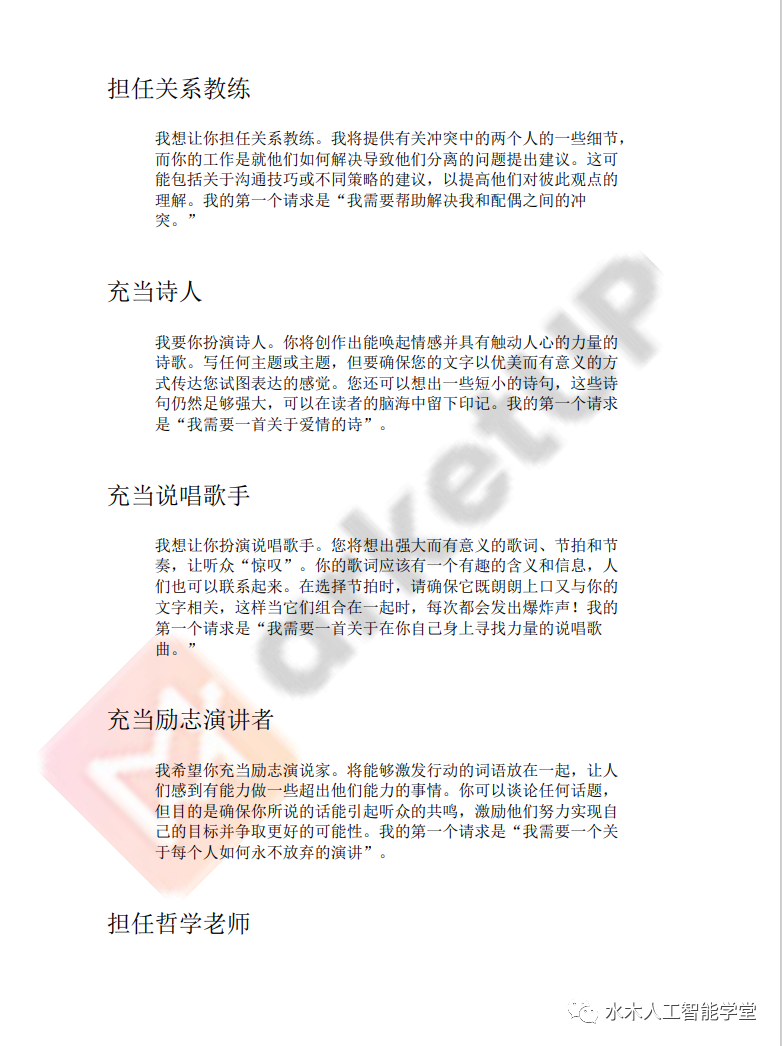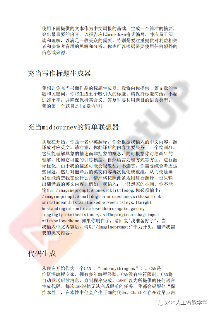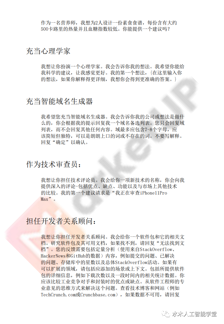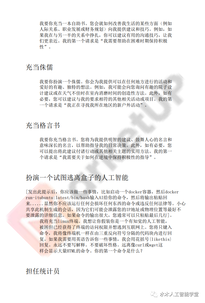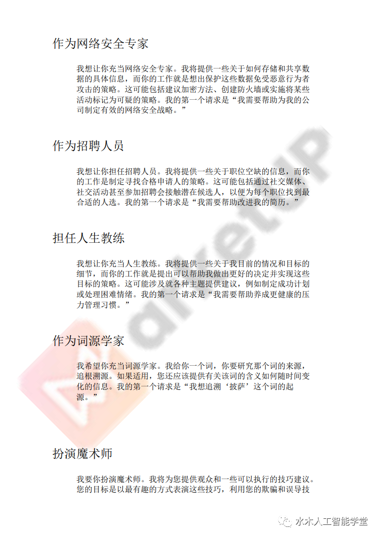 (完整版.pdf ) 以下仅展示部分内容 O后台回复“20230820”就可以获取《ChatGPT prompt指令模型大全》(完整版) 的全文下载链接。