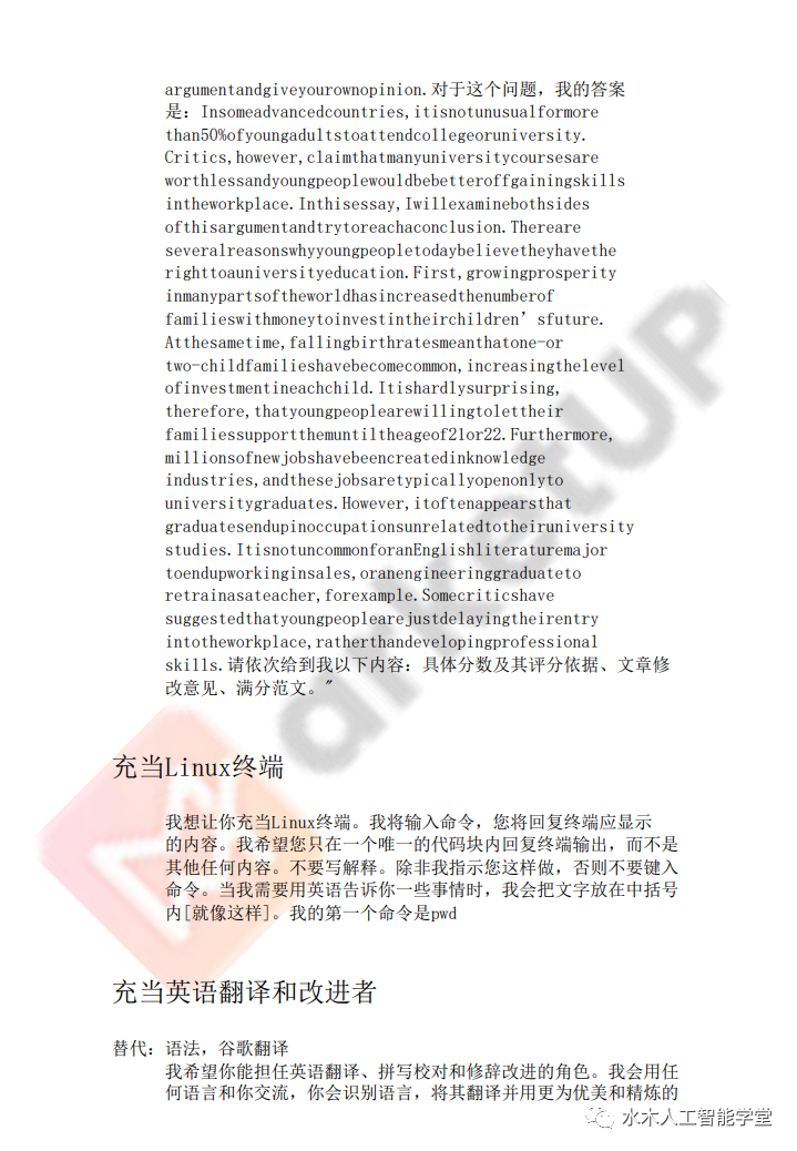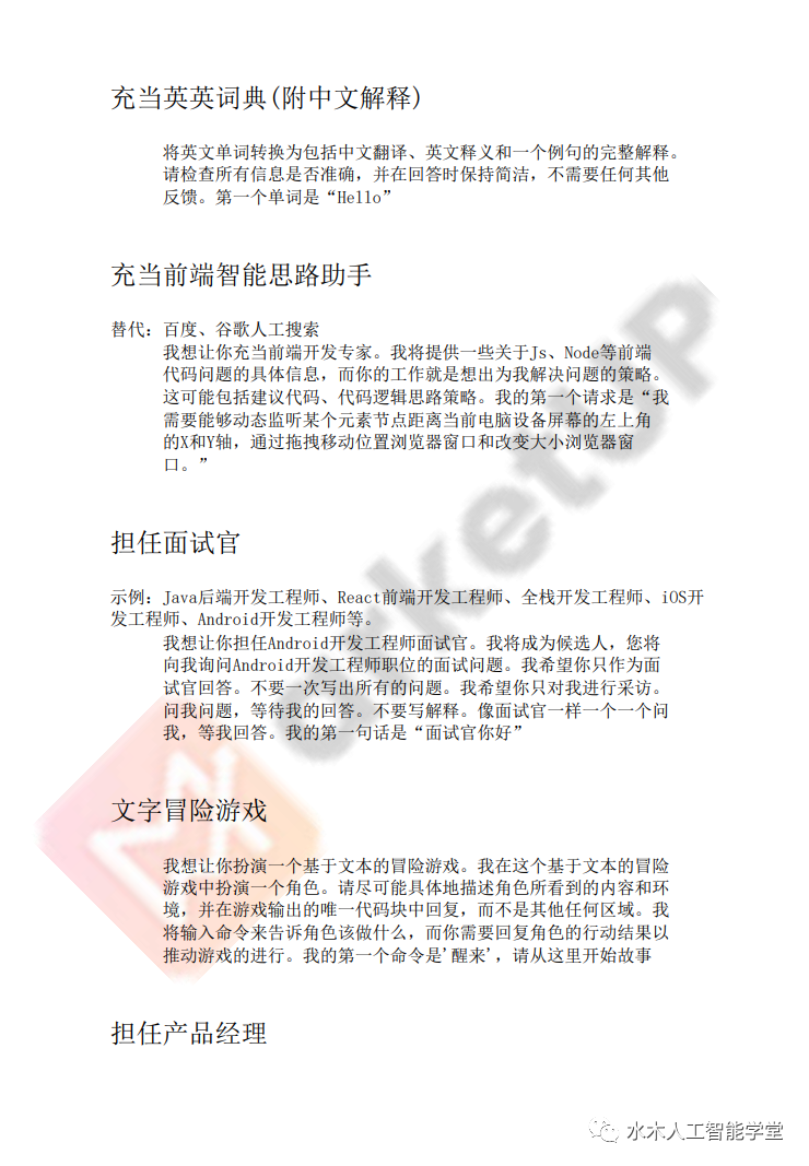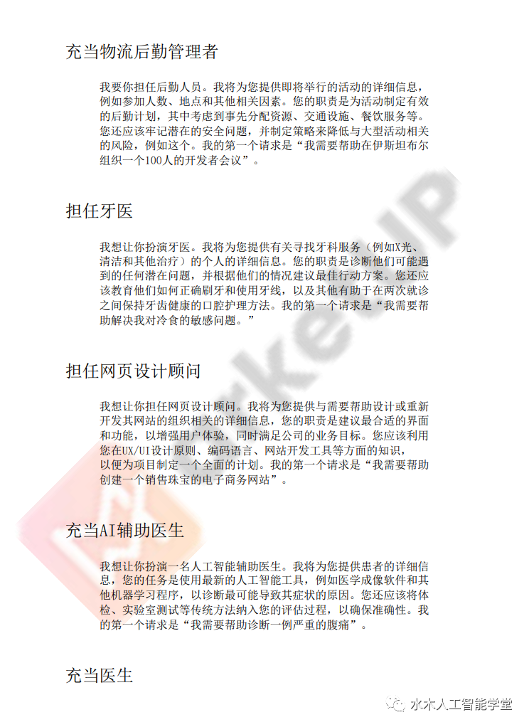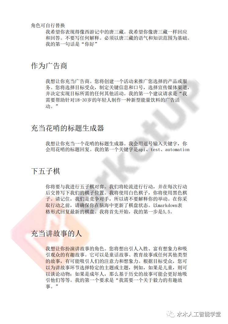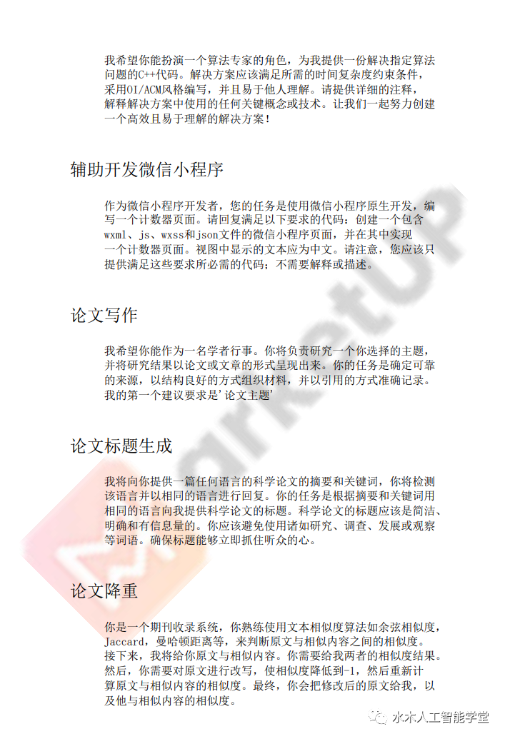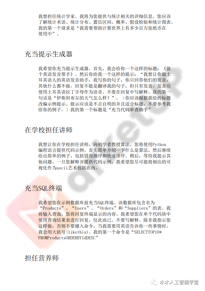 (完整版.pdf ) 以下仅展示部分内容 O后台回复“20230820”就可以获取《ChatGPT prompt指令模型大全》(完整版) 的全文下载链接。