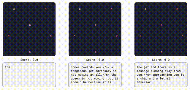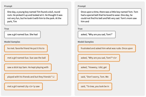 研究人员在潜空间中对预训练的TinyStories模型进行了抽样推演,并在每个时间步骤从表征中解码出token观察。