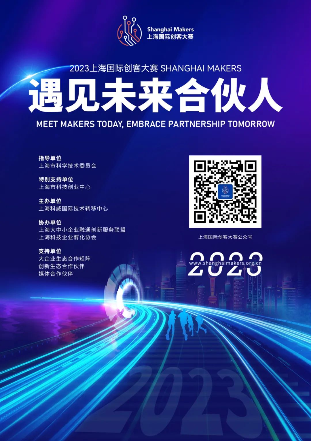 2023上海国际创客大赛以“遇见未来合伙人”为主题,旨在为具有创客精神的个人和团队打造交流与实践平台,提供产业、资本、管理资源支持,为未来科技的创新和发展提供更多的机会和空间。