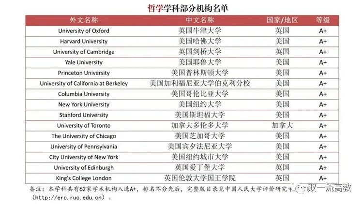 研究团队选取了哲学、语言文学、历史学、艺术学、工商管理、经济学、法学、社会学、政治学、公共管理、新闻传播学、图书与信息管理及教育学等13个国际通用的人文社会科学学科领域作为评价对象,从学术创新与人才培养两个维度,对境外1万余家学术机构的相关学科实力进行了评价分级,得分前2%评为A+、前5%评为A、前10%评为A-、前40%评为B、前70评为C,得出《境外大学学科分级目录(人文社会科学)》。