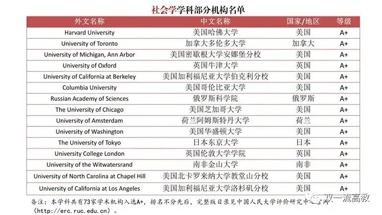 其中,哈佛大学、斯坦福大学、芝加哥大学、宾夕法尼亚大学、加利福尼亚大学伯克利分校、多伦多大学、东京大学、剑桥大学、纽约大学、哥伦比亚大学等高校的人文社会科学学科综合竞争力位居前列。