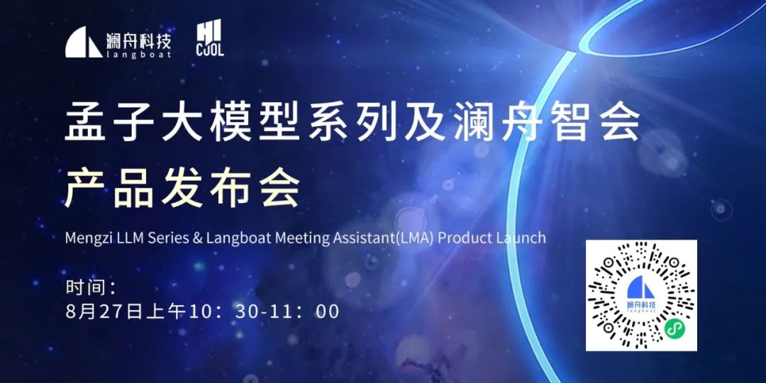8月27日(本周日)10:30-11:00,在北京·中国国际展览中心(顺义馆)HICOOL2023全球创业者峰会新品发布会舞台,澜舟科技将举办“孟子大模型系列及澜舟智会产品发布会”,本次发布会由澜舟科技合伙人兼首席产品官李京梅聚焦大模型技术的创新应用和发展趋势,带来孟子大模型系列面向企业的分级产品服务的最新进展和实践案例。敬请期待!