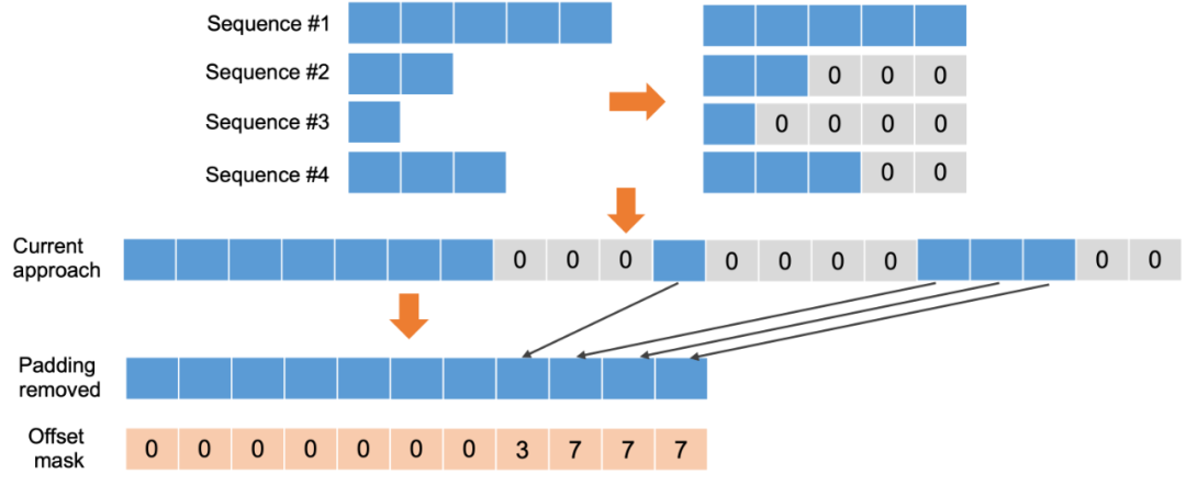 图 9:输入 Padding 移除的方案 - 通过引入 Offset Mask,移除 Padding 的 Sequence 和原始的 Sequence 可以互相转换重建