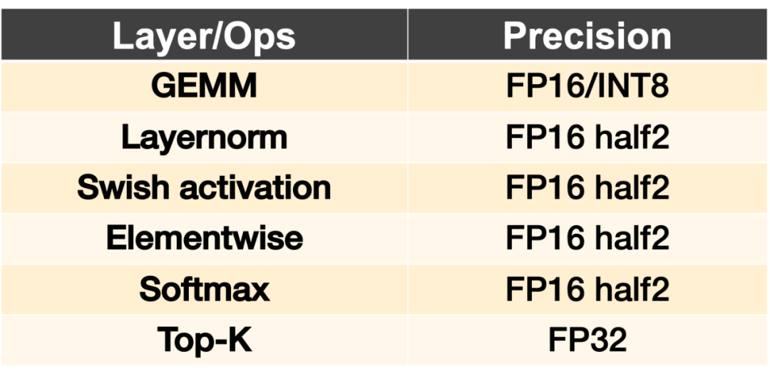 图 7:Transformer FP16 版本的几个关键 CUDA kernel 采用的量化精度