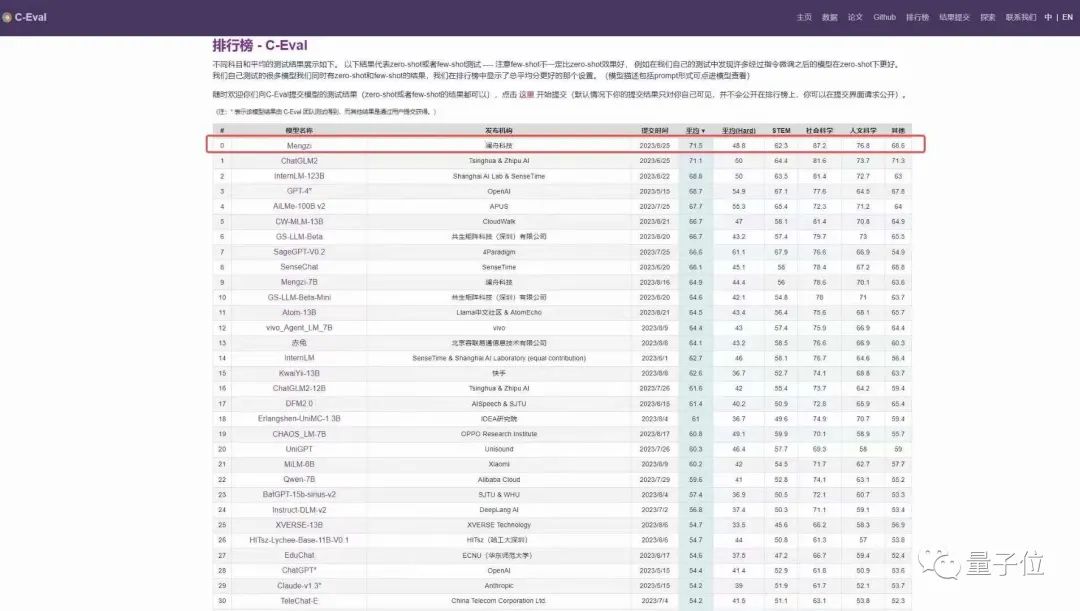 就在最近,孟子大模型还登顶中文大语言模型测评榜单C-Eval。