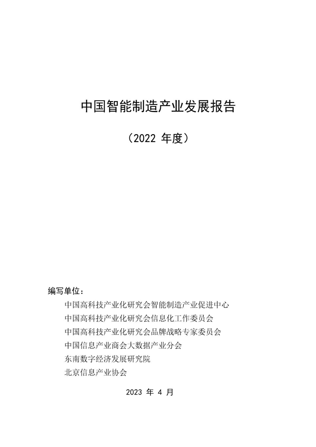 (完整版.pdf ) 以下仅展示部分内容 O后台回复“202308282”就可以获取《2022年中国智能制造产业发展报告》(完整版) 的全文下载链接。