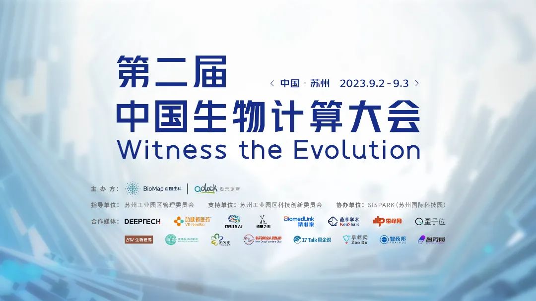 2023年9月2日-3日,由播禾创新&百图生科联合主办的“见证进化 — 第二届中国生物计算大会”,将在苏州工业园区金鸡湖畔拉开帷幕。本届中国生物计算大会,将汇聚数十位院士专家、青年学者、新秀企业代表,并以前沿的科研突破和深邃的未来洞见,和大家一起分享生物计算的新边界、新问题、新可能,一起见证进化,一起开启生物计算下一程。智药局作为第二届中国生物计算大会的合作媒体,享有大会主办方专属的50张赠票,智药局的读者可扫描大会报名二维码,通过VIP通道,在邀请人一栏备注“智药局邀请”,即可获得大会免费门票一张,名额有限,用完为止。