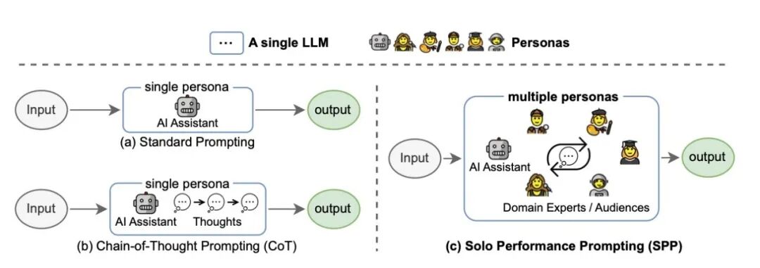 这篇论文主要探讨如何在大型语言模型(LLM)中实现认知协同作用,以提高其解决复杂任务的能力。尽管 LLM 作为通用任务解决代理表现出一定的性能,但在需要深入领域知识和复杂推理的任务中,它们仍然存在挑战。作者提出了一种名为 Solo Performance Prompting(SPP)的方法,通过与多个角色进行多轮自我协作,将单个 LLM 转变为认知协同者。这种认知协同者是指一个智能代理,它与多个智能体合作,结合各自的优势和知识,以提高在复杂任务中的问题解决和整体性能。通过根据任务输入动态识别和模拟不同的角色,SPP 释放了 LLM 中认知协同的潜力。作者发现,为 LLM 分配多个、细粒度的角色比使用单个或固定数量的角色能更好地解决问题。SPP 在三个具有挑战性的任务上进行评估:知识密集型的 Trivia 创意写作,推理密集型的 Codenames 协作和 Logic Grid 谜题。与仅提高 LLM 推理能力的先前工作(如 Chain-of-Thought)不同,SPP 有效地激发了内部知识获取能力,减少了虚构现象,并保持了强大的推理能力。相关代码、数据和提示可访问:https://github.com/MikeWangWZHL/Solo-Performance-Prompting.git 。