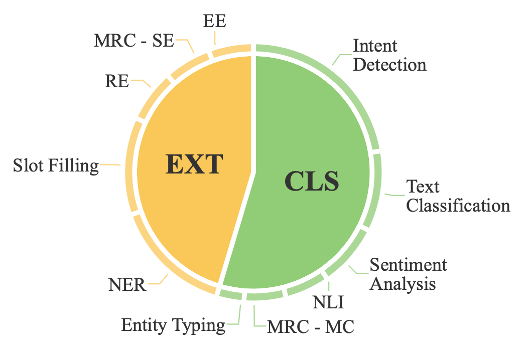 自然语言理解(Natural Language Understanding, 简称NLU)任务是帮助机器理解自然语言的任务的总称,与自然语言生成(Natural Language Generation,简称NLG) 合称为自然语言处理(Natural Language Processing,简称NLP)。NLU任务覆盖文本分类、信息抽取、情感分类、关系抽取、事件抽取等子任务,是各类信息处理系统,如信息管理系统、推荐系统、搜索引擎的重要基础组件。