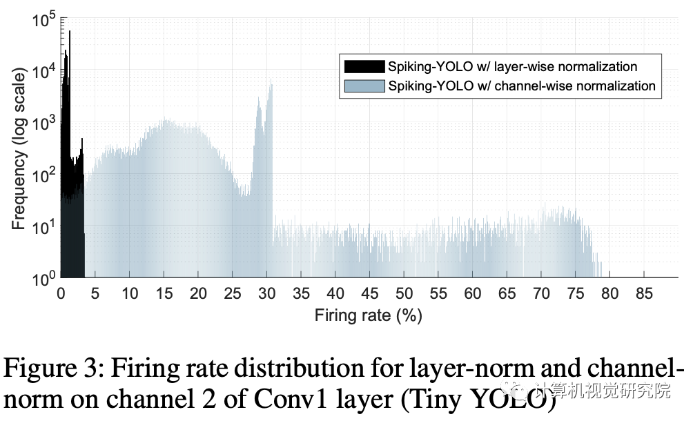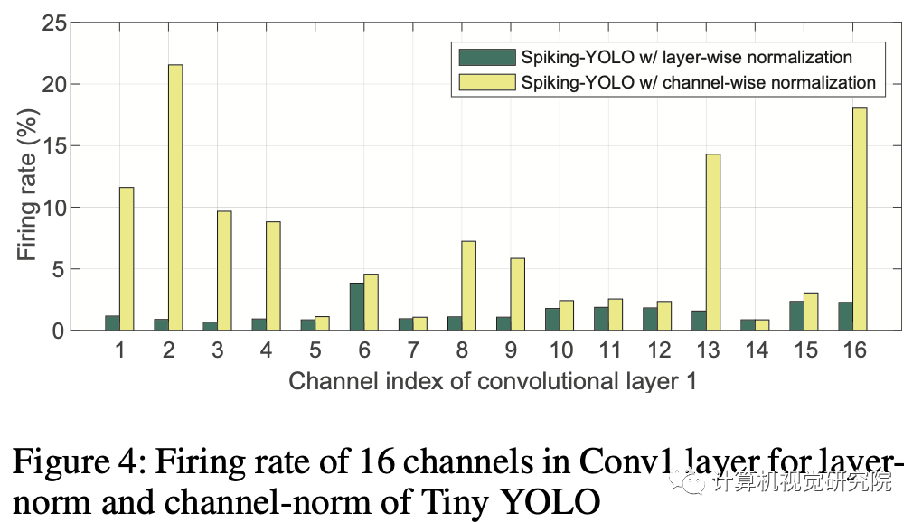 常用的SNN归一化方法过于低效,导致脉冲发射频率过低。由于SNN需要设定阈值进行脉冲发射,所以要对权值进行归一化,这样有利于阈值的设定,而常用的SNN归一化方法在目标检测中显得过于低效,后面会详细阐述