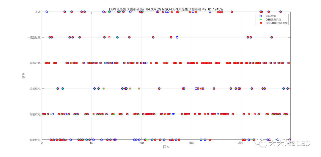 实验结果表明,NGO-DBN模型在轴承故障分类任务中表现出色。与传统的DBN模型相比,NGO-DBN模型具有更高的分类准确率和更好的泛化能力。与其他常用的分类算法相比,NGO-DBN模型在轴承故障分类任务中也取得了更好的性能。这表明北方苍鹰算法能够有效地优化DBN模型,提高其在故障诊断和分类任务中的性能。
