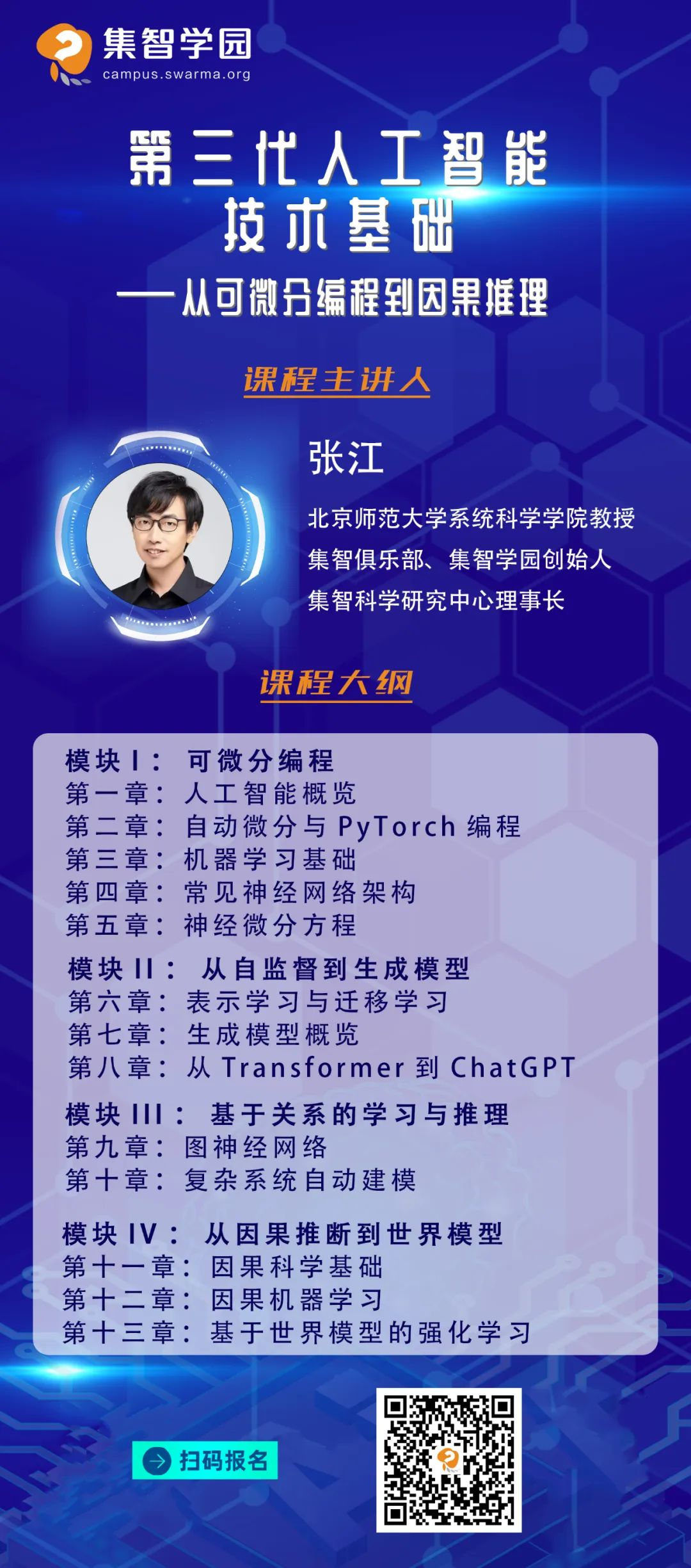 北京师范大学系统科学学院教授、集智俱乐部创始人张江老师的最新课程《第三代人工智能技术基础一一从可微分编程到因果推理》要通过众包写作的方式出书啦!