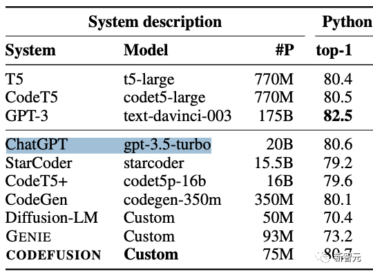 性能方面,7500万参数的CodeFusion在top-1准确率指标上,可以与最先进的350M-175B模型相媲美。