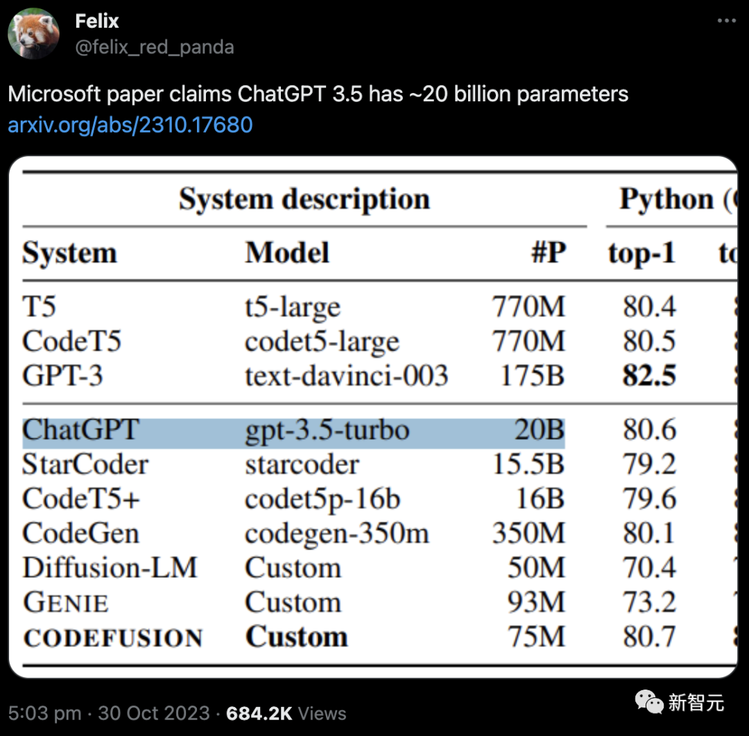 【新智元导读】微软最近一篇论文爆料,GPT-3.5的参数量只有20B,远远小于之前GPT-3公布175B。网友表示,ChatGPT能力似乎「配得上」这个体量?