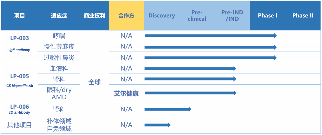 其中,进度最领先的项目新一代抗IgE抗体LP-003正在开展II 期临床,预计明年初将启动III期临床,其主要适应症为哮喘、慢性荨麻疹、过敏性鼻炎等。6月,LP-003在ERS 2023上公开的I期临床研究结果显示,比起其他的竞品药物,其在药效、用量、用药频率等方面实现了显著的提升。LP-005是天辰生物基于自主研发的 iCibitorTM 技术平台开发的第一款补体双功能抗体,拟用于多种补体相关罕见病和常见病的治疗,也于6月获得了临床默示许可。其独特优势在于,能够同时作用于补体系统两个关键靶点,在某些疾病上有潜力获得比单靶点阻断更好的治疗效果;另一方面 LP-005 对补体不止一条通路具有阻断效果,也令其具有对更多适应症的拓展潜力。未来一年内,天辰生物计划将有三个项目处于II /III 期临床阶段,进入项目成熟期。抗体发现平台:公司依托自主的高性能杂交瘤技术平台(小鼠、羊驼),以满足临床需求及市场需求为导向,采用自主研发模式,充分发掘市场潜力,产生显著的经济效益和社会效应。抗体工程平台:包括可回收抗体的改造、CHO display平台、人源化、长效化改造等,该平台已有产品完成中美临床III期,开发风险较低,再开发成本显著下降,投入产出比高。工艺开发平台:拥有自主知识产权的宿主细胞和培养基,有助于降低开发成本、高效的进行工艺开发和中试生产放大。平台技术已经得到验证——平台产品即将在美国FDA申报BLA,风险较低。成立以来,天辰生物硕果累累,还在2022年和2023年先后获了得“江苏省潜在独角兽企业”和“中国潜在独角兽企业”称号。