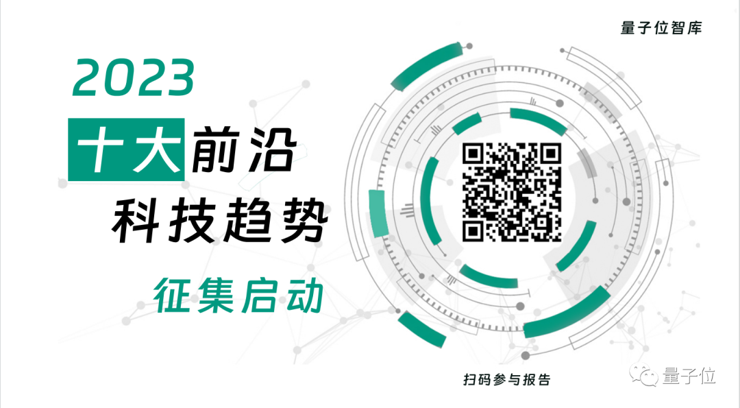 量子位智库《2023年度十大前沿科技报告》,启动案例征集。诚邀顶级研究机构、一流投资大咖、前沿科技创新公司,参与共创,分享案例。