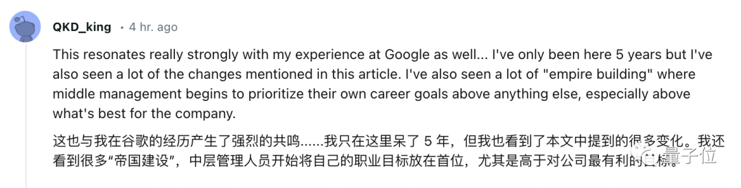 有同为谷歌前员工的网友点头如捣蒜,疯狂赞同老哥的一些感受:
