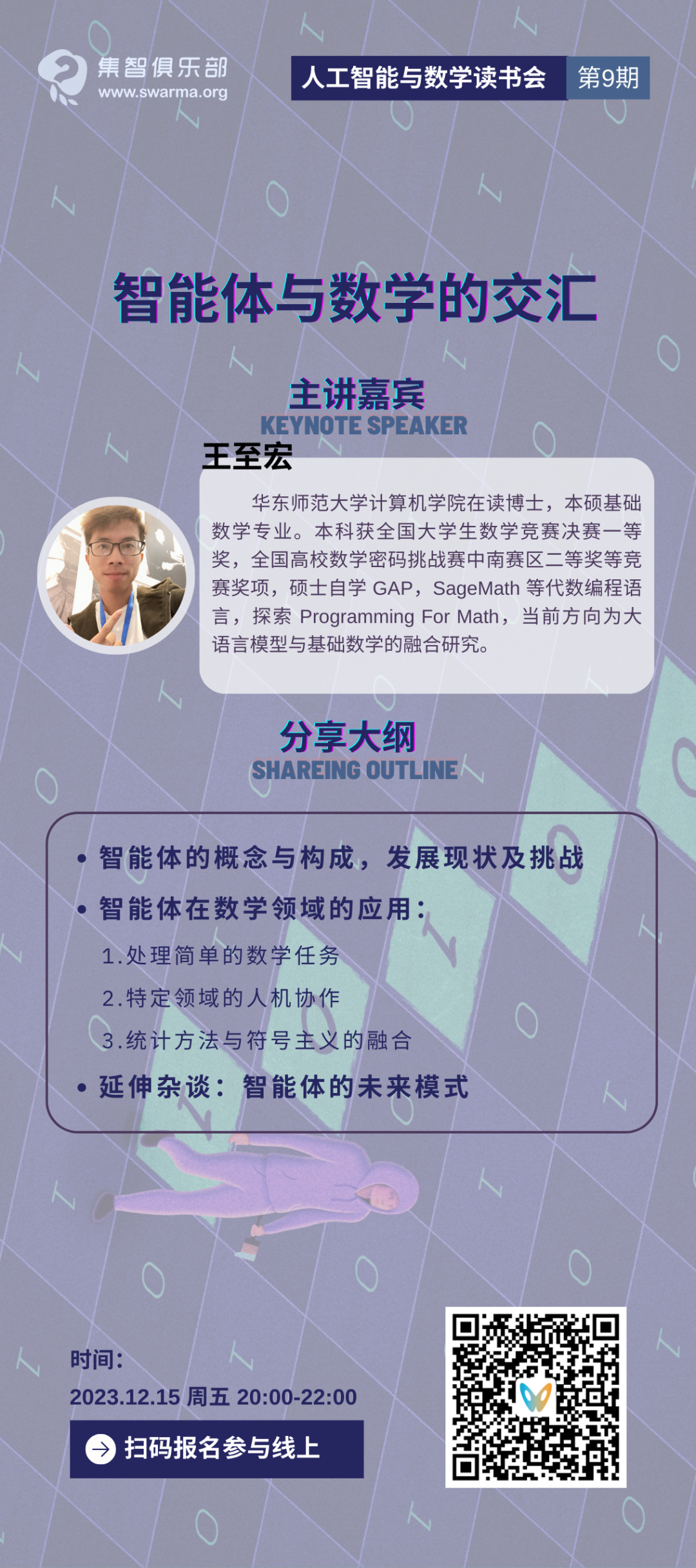 与读书会之间的关系:此次分享中,我们以智能体在数学领域的应用为出发点,探讨它们如何推动数学的创新,未来如何进一步与数学融合。这为参与读书会的听众提供了一个理解人工智能在数学领域作用的新视角,并激发他们对两个领域未来发展可能性的思考。