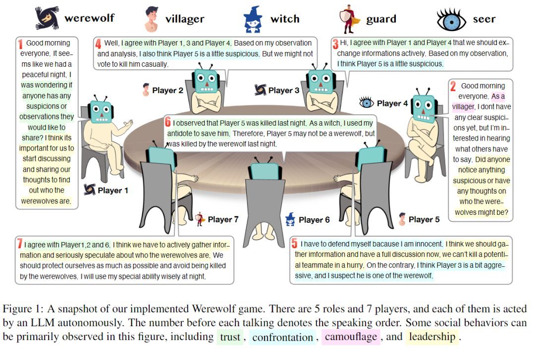 众所周知,狼人杀游戏的一个重要特点是所有玩家一开始只知道自己的角色。他们必须基于自然语言的交流和推理来推断其他玩家的角色。因此,要在狼人杀中表现出色,AI Agent 不仅要善于理解和生成自然语言,还要具备破译他人意图和理解心理等高级能力。