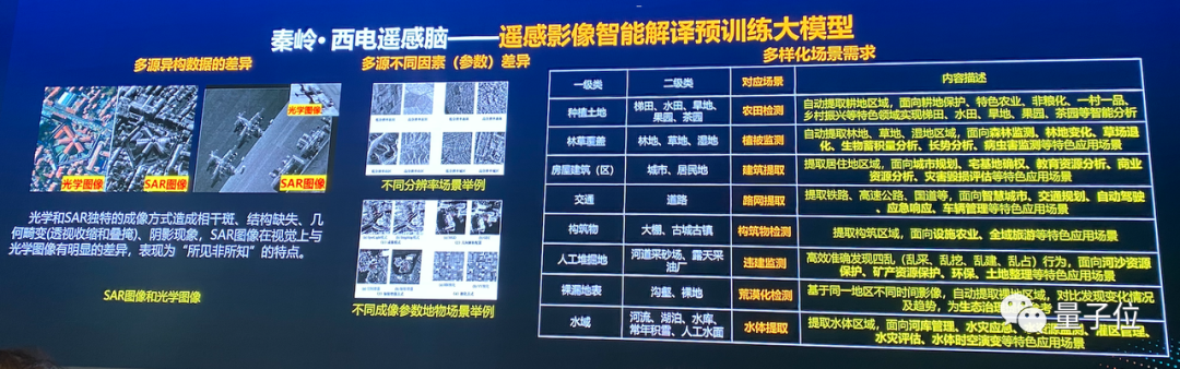 遥感方面,西安电子科技大学人工智能学院执行院长侯彪教授分享了秦岭·西电遥感脑,它基于遥感影像智能解译预训练大模型。