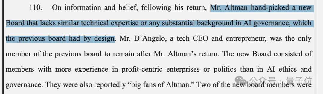 在起诉书中马斯克还认为,奥特曼亲自挑选的新董事会,与前董事会相比缺乏足够的AI专业知识,没有能力“独立判断是否以及何时实现AGI,以及何时应该按协议把微软排除在外”。