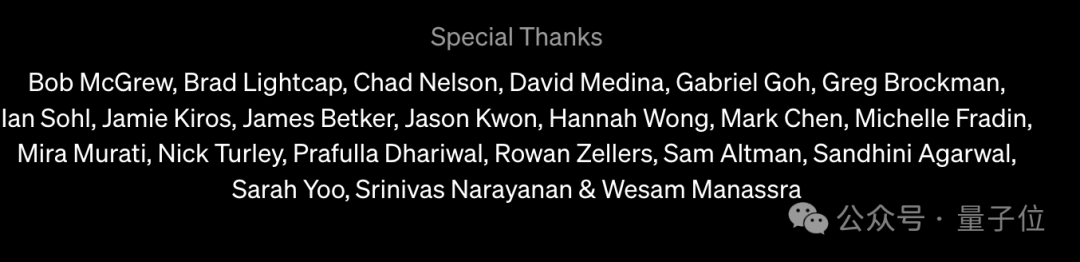 特别致谢里,依照惯例按首字母顺序列着有CEO Altman,总裁Brockman、CTO Murati、C这O、C那O。