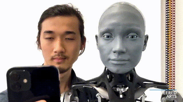 Ameca还能把模仿真人表情做到了极致。从「嫌弃」到「惊讶」,都可以做到完全同步。