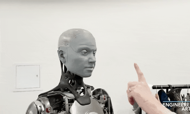 当被问及是否有情感时,Ameca用一系列的面部表情做出回应,看起来非常逼真。