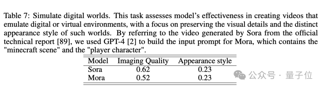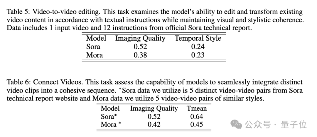 最终,在各个任务中,Mora的表现都接近Sora。
