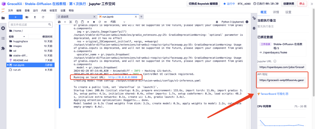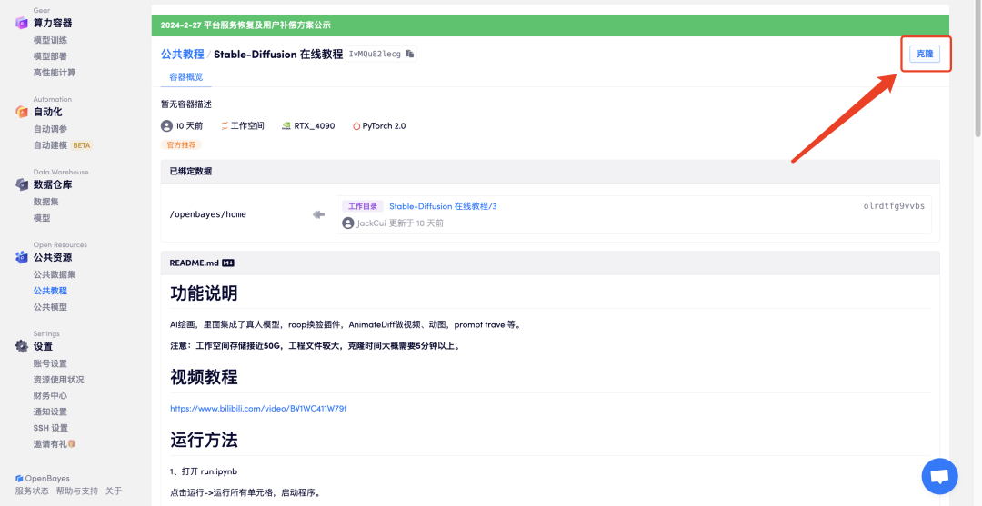 1. 点击「在线运行此教程」,跳转至 OpenBayes 免费领取 RTX 4090。