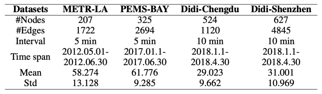 在交通速度预测中,研究人员在 4 个真实世界数据集上进行了实验,包括 MetaLA、PEMS-BAy、滴滴成都和滴滴深圳。
