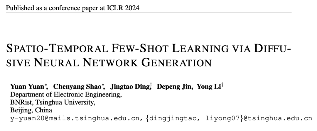 针对城市计算中广泛存在的数据稀缺性问题,清华大学电子工程系城市科学与计算研究中心发布了最新研究成果《Spatio-Temporal Few-Shot Learning via Diffusive Neural Network Generation》,提出了 GPD (Generative Pre-Trained Diffusion) 模型,利用扩散模型生成神经网络参数,将时空少样本学习转变为扩散模型的预训练问题。该研究已被ICLR2024接收,数据代码均已开源。